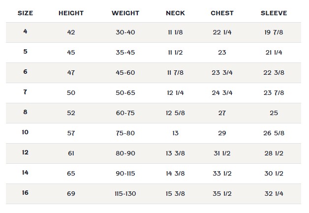 Click here for size chart