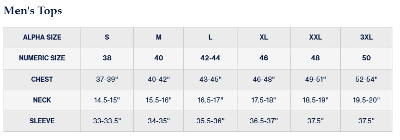 Click here for size chart