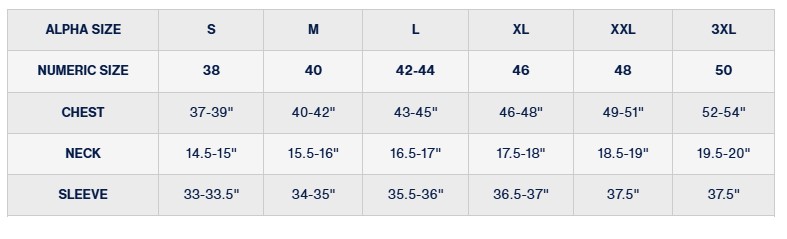 Click here for size chart