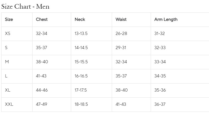 Click here for size chart